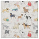 Stylish Cute Different Types Of Dogs Pattern Design White Background Textile Fabric.