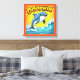 An adorable picture for a child's room. A cute cartoon dolphin jumping out of the turquoise ocean waves pop art ai illustration.