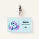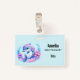 Name badge with an adorable illustration. A blue and purple dolphin surrounded by pretty colourful underwater plants.