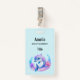 Name badge with an adorable illustration. A blue and purple dolphin surrounded by pretty colourful underwater plants.