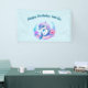 Birthday banner with an adorable illustration. A blue and purple dolphin surrounded by pretty colourful underwater plants.