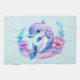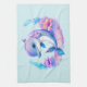Kitchen towel with an adorable illustration. A blue and purple dolphin surrounded by pretty colourful underwater florals.