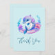 Thank you card with an adorable illustration. A blue and purple dolphin surrounded by pretty underwater florals.