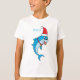 This cute happy dolphin is wearing a funny Santa hat. Drawn in fun cartoon style.