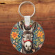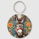 Cute Donkey On Colorful Floral Background Keychain
