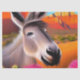 Cute Donkey in red cliffs of the desert with flowering cactus
