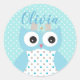 Cute Dotty Blue Owl Art Personalised Girls Classic Round Sticker