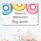 This cute Baby Sprinkle banner features pink, blue, and yellow watercolor doughnuts and sprinkle confetti.
