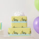 Funny birthday dragon gift wrap or party decoration featuring cartoon fire-breathing dragon blowing out birthday cake candles.