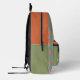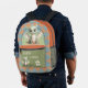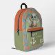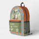 Backpack featuring a cute dragon on a chequered design in terra cotta, dusty blue and green. The dragon images are on separate files and can be scaled, dragged or deleted according to your needs. The front pocket paw print is also a separate image. A lovely backpack for younger children to use for school.