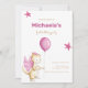 Cute Dragon Pink Girl First Birthday Invitation