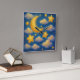 A whimsical pastel painting of a night sky. A heartwarming image of a crescent moon surrounded by smiling stars and soft, glowing clouds. The soothing hues of midnight blue, golden yellow, and lavender create a cozy, storybook feel. Each star shines with a touch of warmth and personality, turning the night sky into a peaceful gathering of sleepy friends. This piece brings a sense of comfort, innocence, and wonder. This piece is ideal for nurseries, children’s rooms, or anyone who loves whimsical celestial art. Hang it above a crib or changing table to create a soft, engaging focal point. This artwork also makes a wonderful and unique baby shower gift. This art can be customized, printed, and or downloaded.