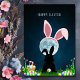 Cute Easter Bunny and Full Moon with Bunny Ears Happy Easter Card - Inside Greeting - "Wishing You an Easter Holiday Full of Fun and Laughter" -