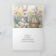 This Easter card features a charming watercolor illustration of an Easter bunny, a basket brimming with colorful eggs, and vibrant spring tulip and daffodil flowers. A delightful banner with an Easter holiday greeting graces the front, while the interior offers ample space for a personalized message, allowing you to easily include a child's name or any other special wording you desire.