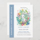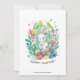 A cute easter bunny with a flower bouquet, modern watercolors illustration, a customizable invitation for an egg hunt, and a brunch Easter celabration.
