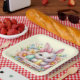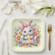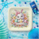 Cute Modern Easter holiday paper plates featuring a cute Easter bunny surrounded by Easter Eggs.
