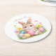 Cute Easter Bunny Rabbit Pink Blush Peony Round Paper Coaster