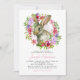 Cute Easter Bunny Rabbit Pink Floral Baby Shower Invitation