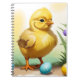 Celebrate Easter and the moments of spring happiness with this cute adorable little chick standing near decorated eggs.