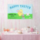 Get ready for an Easter egg hunt with this cute banner featuring a sunny day background. A baby chick looks for Easter eggs and a bunny pops his head out to see what all the fuss is about. Personalize this banner with your information by clicking the customization button to the right of the picture.