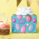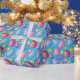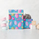 Tons of fun for everyone with this Easter egg wrapping paper. The eggs are in a variety of colours including blue, red, pink, purple, and yellow on a blue background.