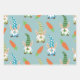 Celebrate Easter with this pattern of cute funny easter gnomes in blue and green holding little easter eggs and carrots surrounding them. It's the perfect easter wrapping paper