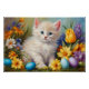 Cute Easter Kitten with Flowers and Easter Eggs Poster