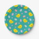 Cute Easter Pattern Chickens Eggs Teal Colour Fun Paper Plate