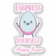 Celebrate Easter with a touch of humour! This adorable "Eggpress Yourself" sticker features a cheerful cartoon egg and a fun pun, making it a perfect addition to your holiday decorations, gifts, or crafts. Ideal for laptops, water bottles, notebooks, and more, this custom-cut vinyl sticker adds a playful charm wherever you stick it. A great choice for pun lovers, egg enthusiasts, and anyone who enjoys festive, lighthearted designs!