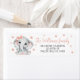 Watercolor cute pink girl elephant baby girl shower return address labels.