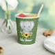 Elephant Baby Shower paper cups from Ricaso ... with yellow and white spotty pattern back detail .. a pretty animal, flower and polka dot feminine design for the mom to be - available in different colour options