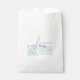 Cute baby shower candy, cake or gift bag, featuring a cute elephant blowing heart shaped bubbles. Pretty baby boy aqua mauve blue shower favour bag with a cute lucky elephant. Personalize with your baby shower details. Uniquely illustrated and designed by Sarah Trett. Ideal to fill with sweets you show your appreciation. Original design by Sarah Trett.