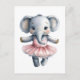 A cute elephant ballerina is dancing ballet. Watercolor illustration.