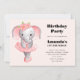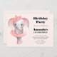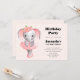Cute Elephant Ballerina Pink & Grey Birthday Invitation