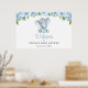 Cute Elephant, Blue Flowers, Baby Shower Welcome Poster