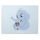 Notepad with design with an illustration of a blue elephant with a brown mouse; illustrated by Radka Kavalcova / MaxiHarmony