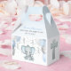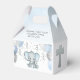 This adorable favour box features blue and grey boy elephants with balloons and confetti. Sides feature a silver cross. Easily customized for your event by clicking personalize. Perfect for your party guests!