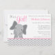 Cute Elephant Chevron Pink Baby Shower Invitation