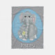 Cute et Fun Eléphant couverture polaire. Bleu et gris avec nom personnalisé. Un mignon éléphant gris tenant une fleur jaune dans son coffre,