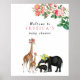 Belles illustrations vintages d'animaux de la jungle et d'accents roses floraux. Une mère et une petite girafe lavées de roses roses avec une mère et un bébé éléphant encore lavés de roses jaunes. Roses botaniques roses positionnées dans le coin avec nom customisé placé au milieu. Customisez le nom et faites-le vous-même. Panneau de bienvenue idéal pour le baby shower. Visitez notre boutique pour voir toute notre collection.