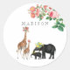 Cute Elephant & Giraffe Floral Custom Name Classic Round Sticker