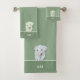 Cute elephant holding a heart and monogram on green shades Bath Towel Set. Monogram can be personalized. Ideal for Everyone!
