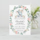 Personalize this chic birthday party invitation with your party details easily and quickly, simply press the customize it button to further re-arrange and format the style and placement of the text. This whimsical invitation features a pretty watercolor pink floral eucalyptus wreath and a cute baby elephant. Great for any age! Matching items available in store! (c) The Happy Cat Studio.