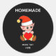 Cute elf holding a heart and Homemade text on black Stickers. Text can be personalized.