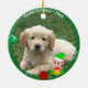 Cute Elf & Custom Golden Retriever Puppy Photo Ceramic Ornament