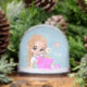 Cute baby elf fairy holding a daisy flower and text Snow Globe. Text can be personalized. Ideal for christmas, birthday, party favour, baby shower favour and more.