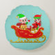 Cute Elf on Christmas Sleigh on Teal Round Pillow