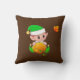 Cute Elf & Pumpkin on Brown Throw Pillow