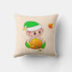 Cute Elf & Pumpkin on Light Beige Throw Pillow