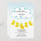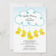 Baby shower canard en caoutchouc mignon invitation avec un nuage de foutaise avec adorable petits canards jaunes garçon sur un arrière - plan bleu ciel ombre. Retournez notre invitation baby shower contemporain et moderne pour voir un arrière - plan assorti pour une touche spéciale supplémentaire. Un choix parfait pour un baby shower garçon. Vous aimez ce design ? Visitez notre boutique pour voir d'autres thèmes baby showers populaires.